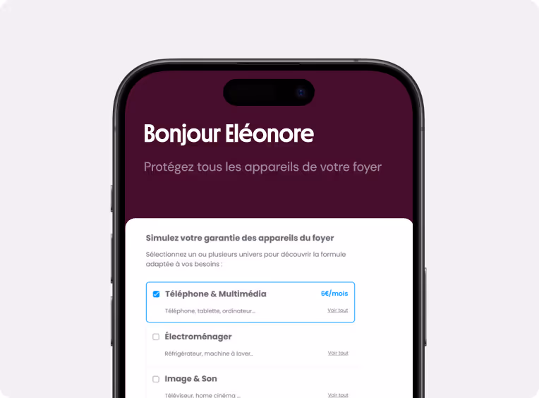 Garantie à vie pour tous les appareils du foyer, mêmes les nomades. Une seule souscription, une protection complète contre la panne et la casse.